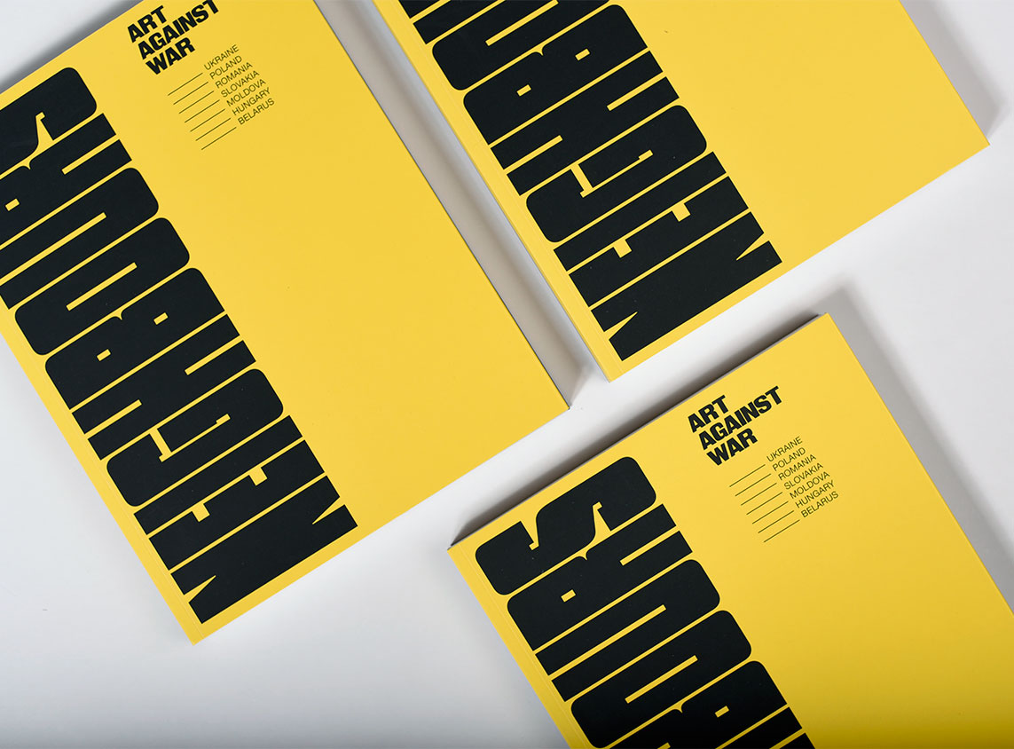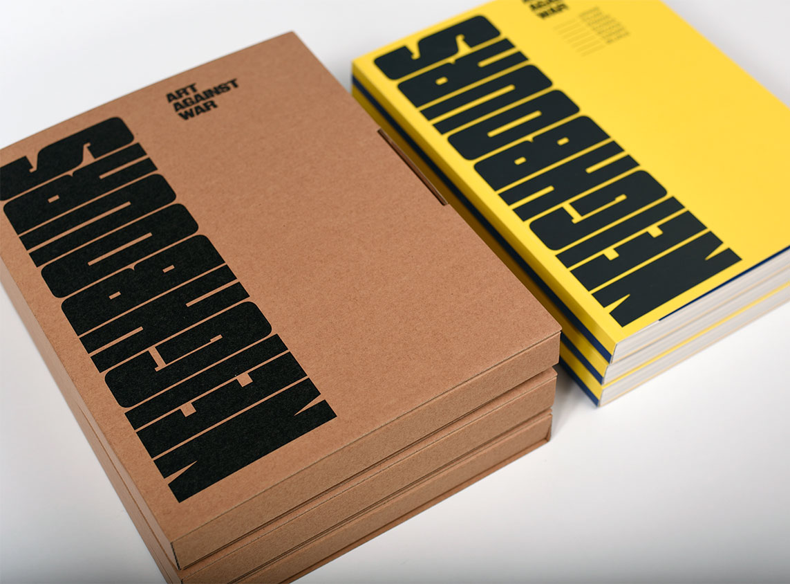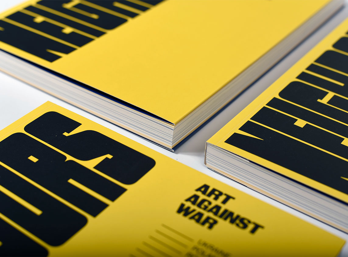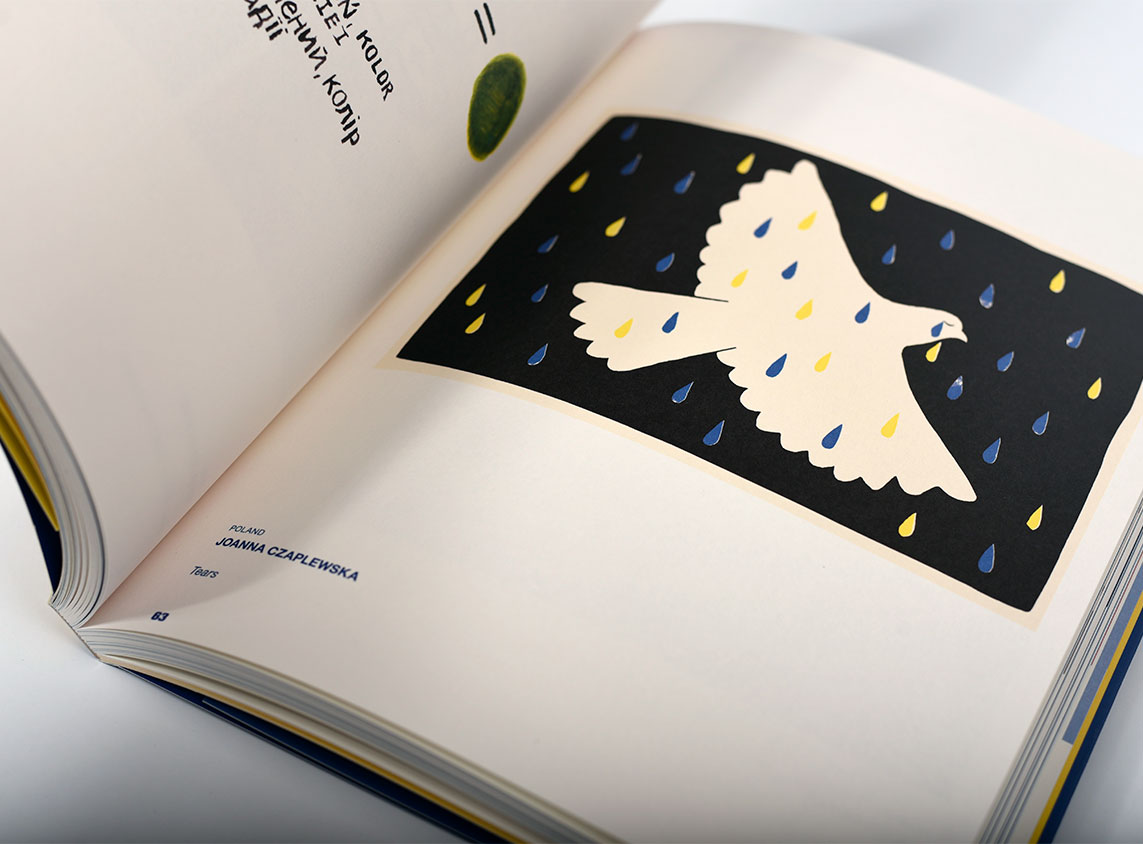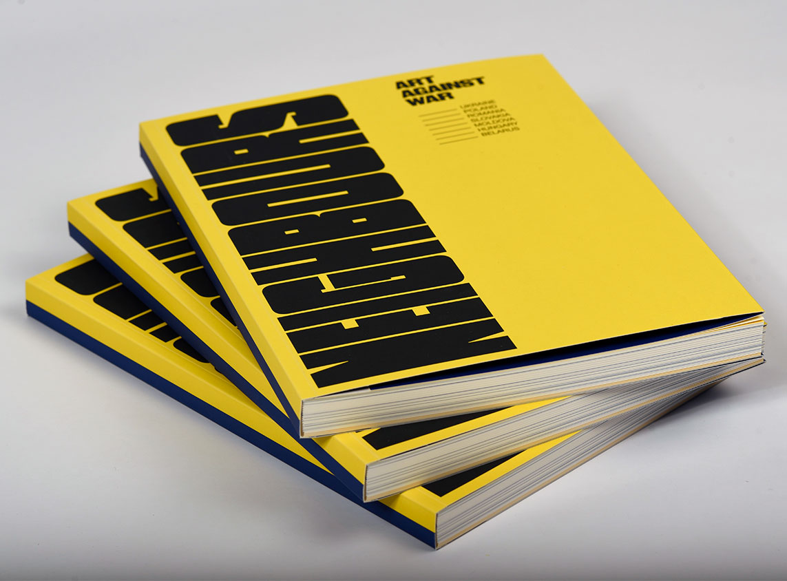 A complete NEIGHBOURS Art Against War art book, paperback, sewn and glued binding, featuring exceptional works of art by 114 artists from Ukraine, Poland, Hungary, Slovakia, Moldova, Romania, and Belarus, presented on 140 pages. The inside of the art book is printed on high-quality Munken Pure Rough 170 g paper in five colours. The cover is made of 300 g cardboard with opening flaps and comes printed in two Pantone colours – the colours of Ukraine. In addition, it comes in original cardboard packaging.